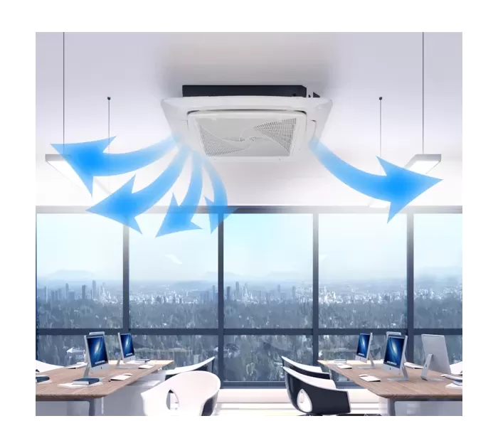 Маскировка потолочного кондиционера имеет четыре отдельные лопасти (4-х сторонний воздушный поток), которые могут быть отрегулированы отдельно в зависимости от потребностей пользователей. Каждая лопасть воздушного потока может быть установлена индивидуально, что позволяет обеспечить комфорт тем, кто находится в климатизированном помещении.